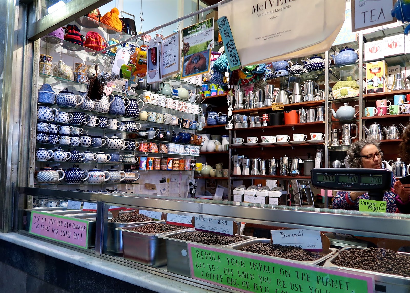 Queen Victoria market was not only the biggest market I have been to (there are clothing and food trucks outside of the building in a huge parking lot), but it was also the most charming! There were hundreds of locals with little baskets to carry their purchases and really unique displays that I have never seen anywhere else. These croissant and coffee stands stood out to me for two reasons. The first being the handwritten signs under the pastries shows such a personal touch as opposed to all of the perfected marketing signs seen in chains all over the city. The imperfection really speaks to the character of the stand. Secondly, if you tell me all of these mugs are not the most charming display you have ever seen you must be lying to me!