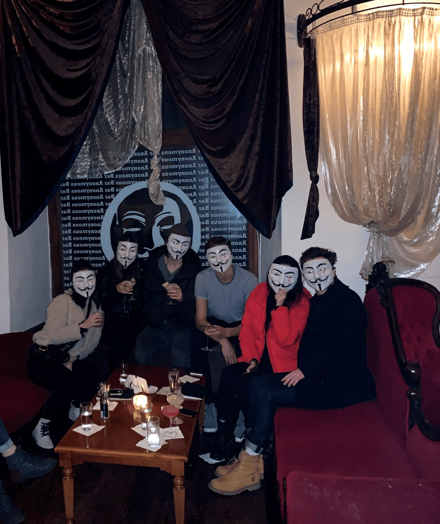 My friends and I had a little too much fun while bar hopping around Prague! The people are very welcoming and love to have a good time (so we fit in just fine). One of my favorite bars was this bar that had masks and amazing (like best I have ever had) spicy margaritas! I also made friends with some of the servers and they gave me great recommendations for more bars to go to!