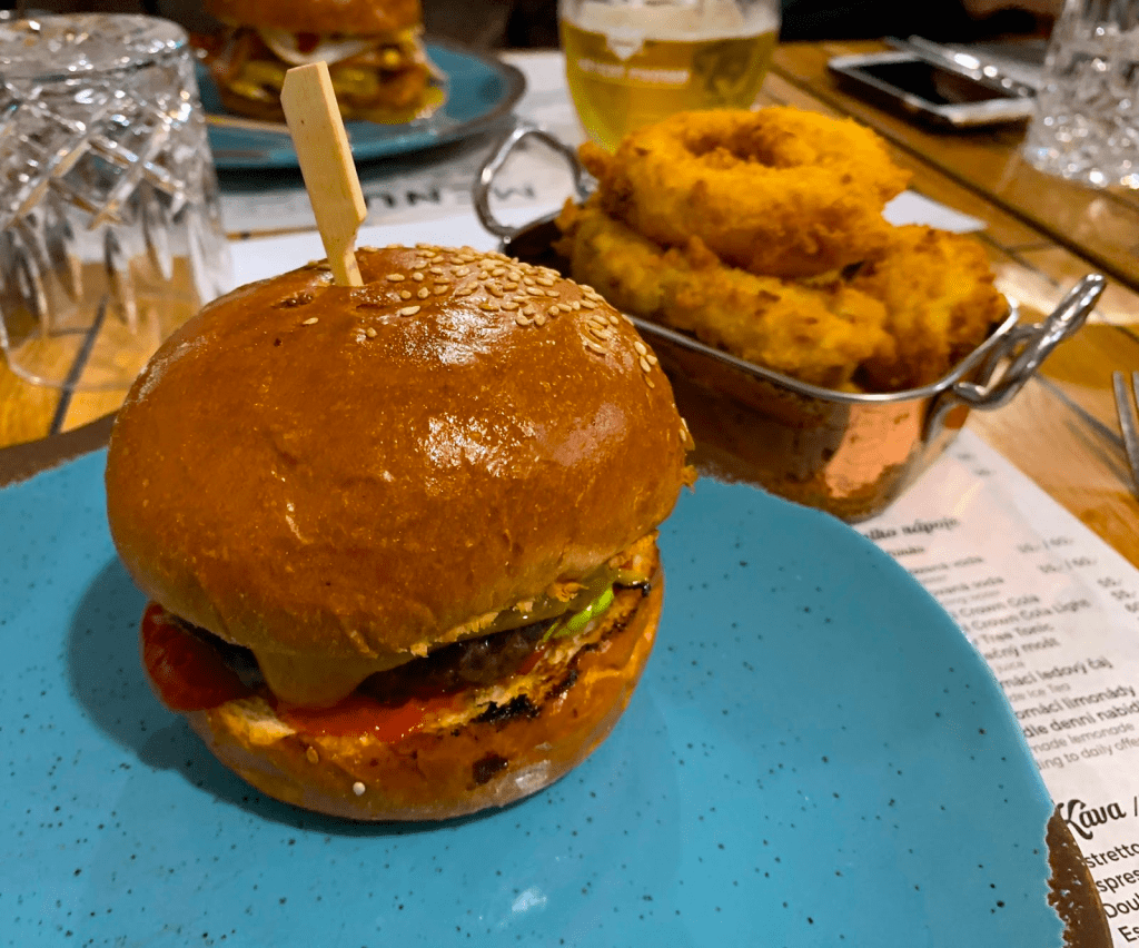This place is known as one of the best burgers in Prague and it lived up to my expectations! I just got a plain cheeseburger (because I am picky and boring) and onion rings. It was just delicious and in such a cute area (near the John Lennon Wall).