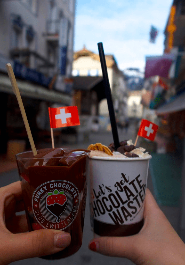 Obviously, Switzerland is known for chocolate, but this place takes it to a whole new level! The cups that say ‘Let’s Get Chocolate Wasted’ make for a great photo, but get this, it actually tastes amazing too (shocking, I know)! It was so delicious that I got chocolate truffles to eat later on as well.