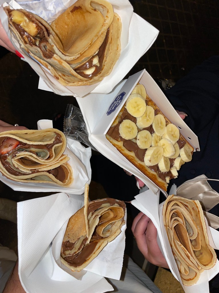 And our late night snack had to be crepes (and a waffle) with nutella, of course! We went to a random stand outside of the club, so I don’t have the name, but you’ve got to enjoy crepes with nutella while in Paris!