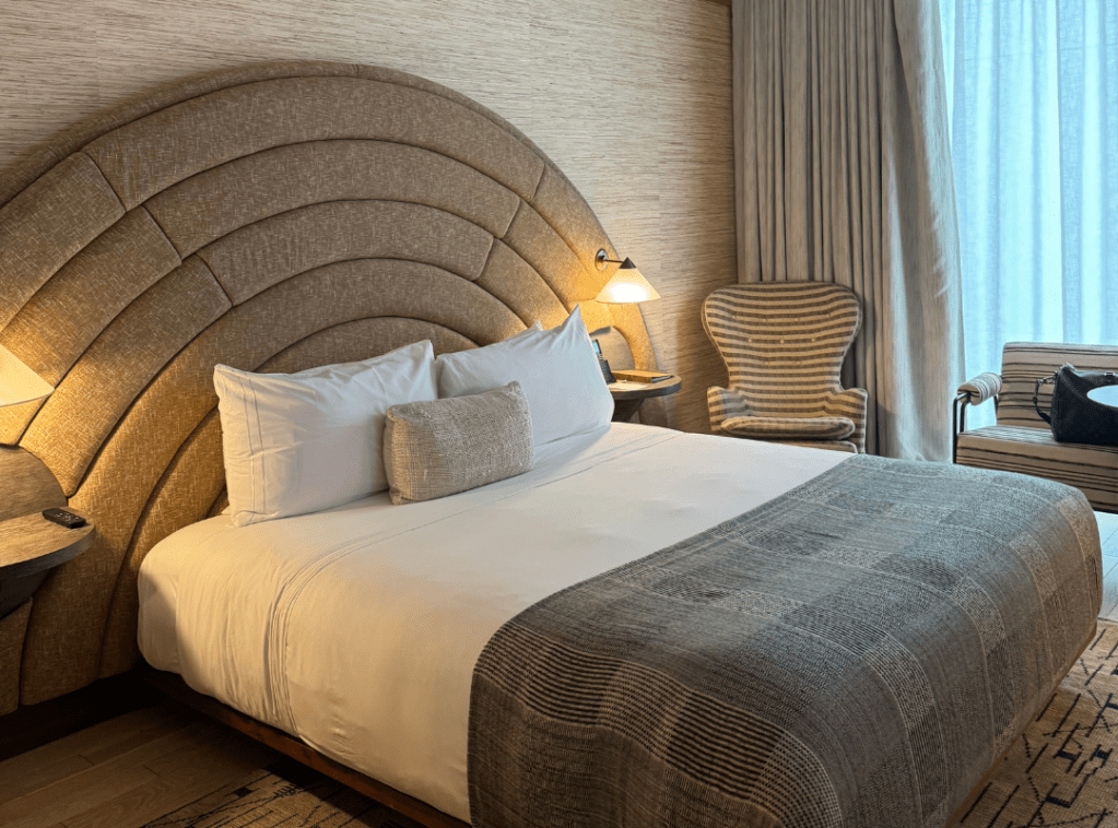 The Santa Monica Proper Hotel’s art deco-inspired interior, designed by the famed Kelly Wearstler, merges coastal California vibes with high-end aesthetics. The hotel’s decor includes natural textures, muted tones, and sophisticated details, which create a warm and welcoming environment. Every corner of the hotel feels curated, offering Instagram-worthy design moments that reflect the charm of Santa Monica.